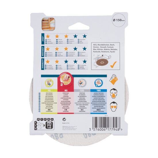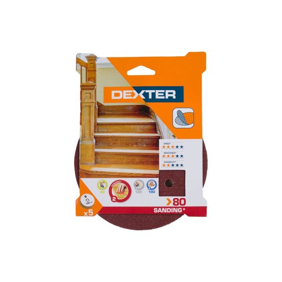 ABRASIVO LEVIGATRICE ROTORBITALE DEXTER,PER LEGNO 150MM, FORATO,GRANA 80,5 PEZZI