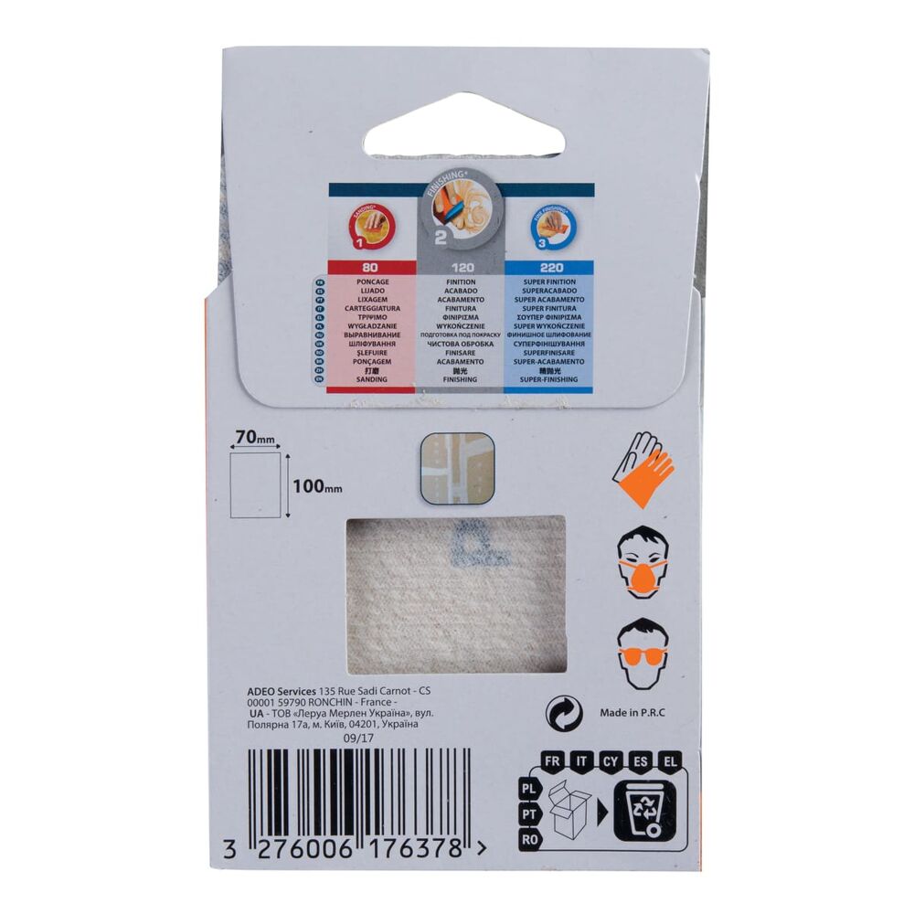 FOGLIO ABRASIVO DEXTER PER MURO 100X70MM GRANA 120