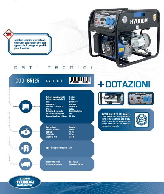 Generatore di corrente HYUNDAI 65125 2800 W