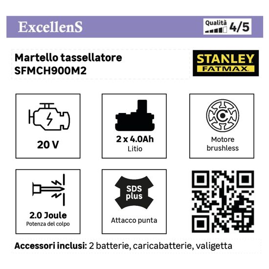 Martello tassellatore a batteria STANLEY FATMAX FMCD900M2S , 18 V , 1.5 J 4 Ah, 2 batterie