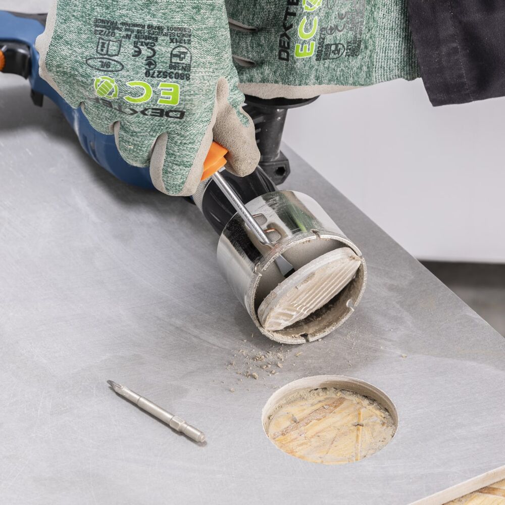 - È dotato di una punta pilota per il posizionamento preciso della sega a tazza