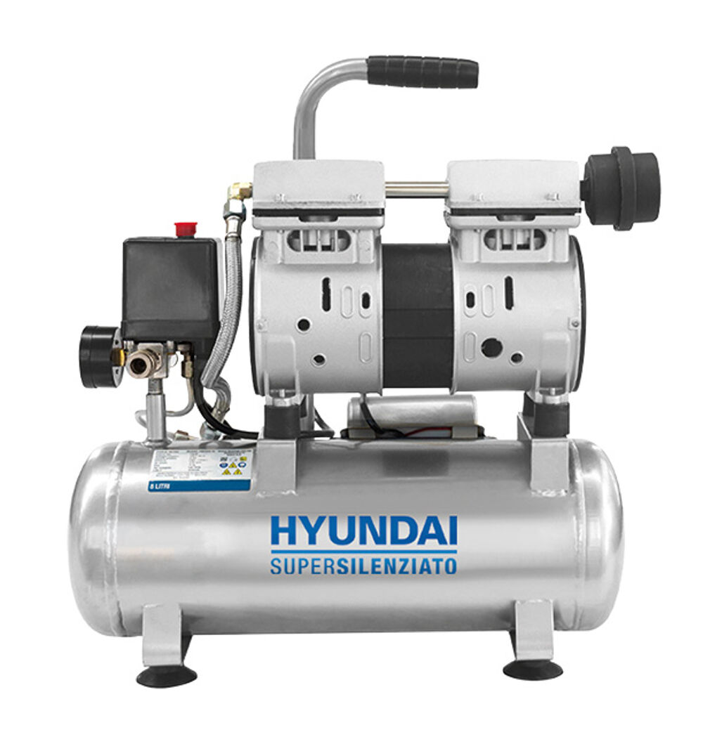Compressore silenziato HYUNDAI OIL FREE, 1 hp, 8 bar, 6 litri