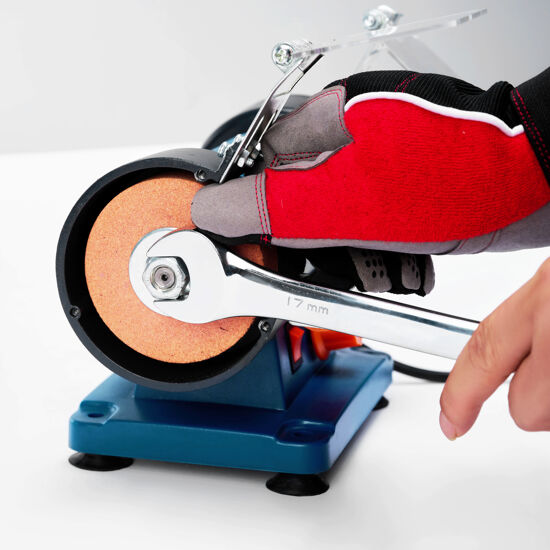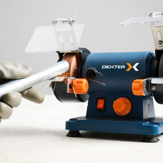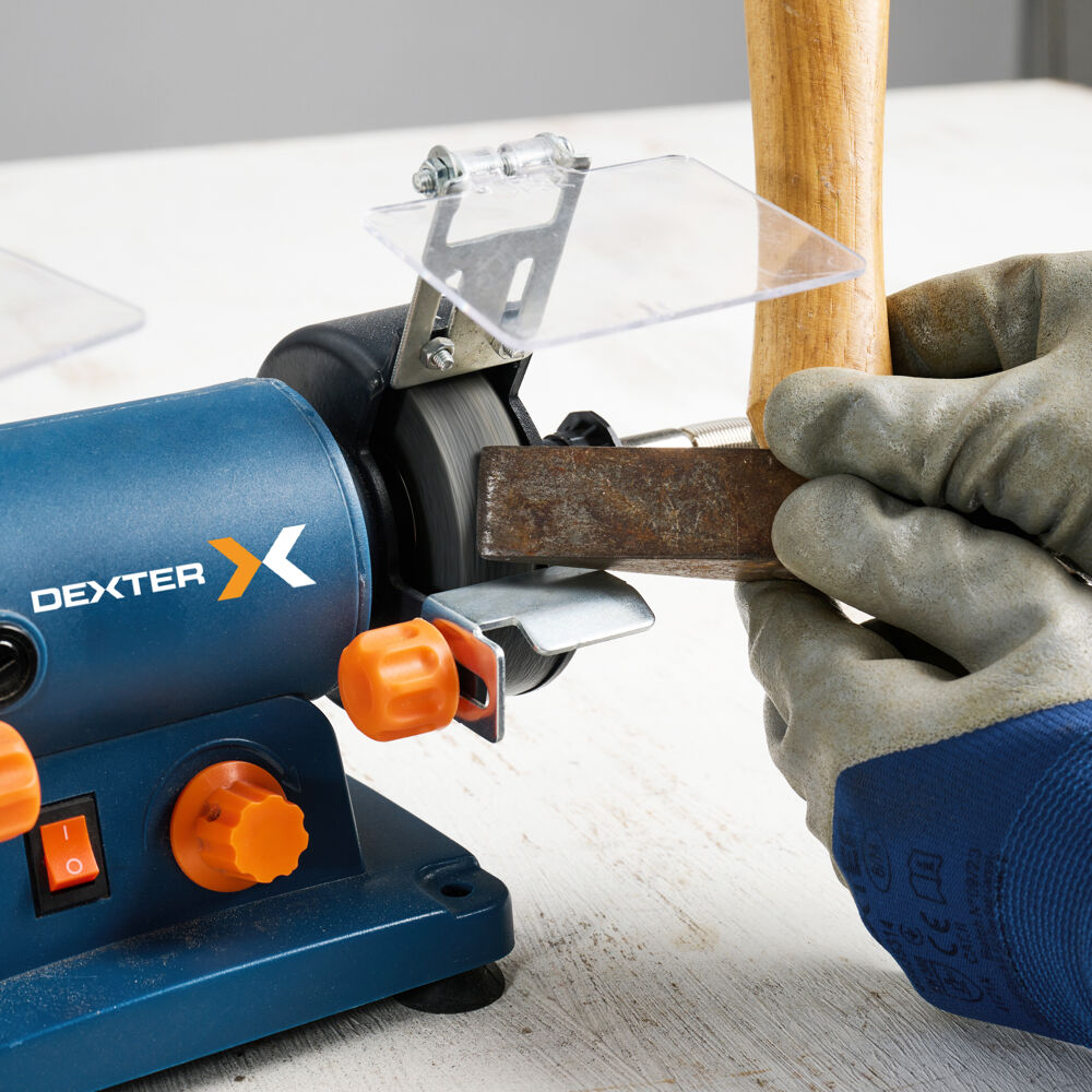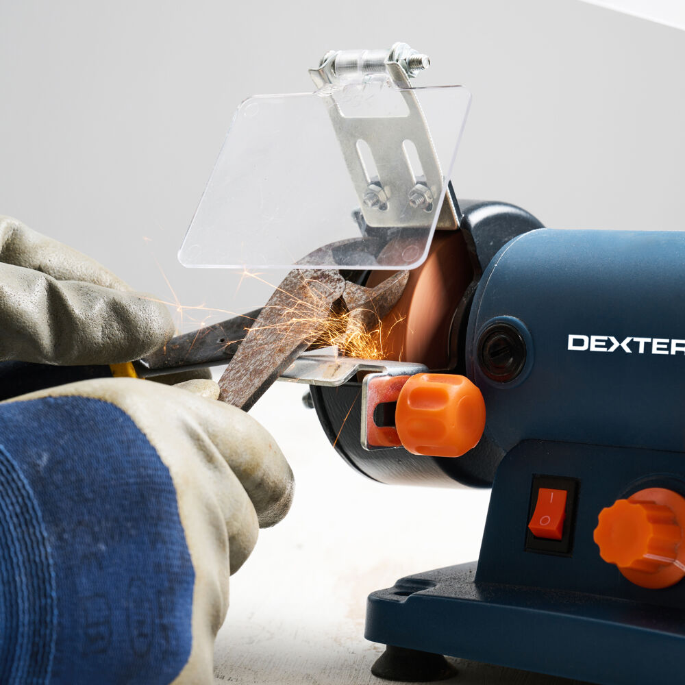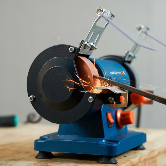 - Grazie alla sua potenza di 120 W e alla sua velocità a vuoto fino a 9900 giri/min, questa smerigliatrice da banco è perfetta per levigare, affilare e rifinire varie superfici