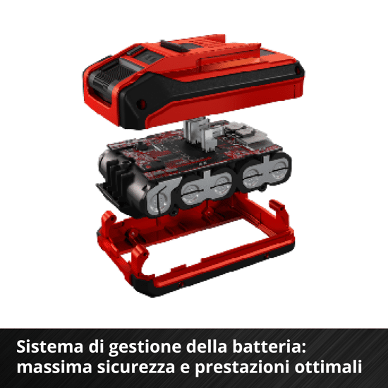 - Il sistema di gestione attiva della batteria con controllo del processo ABS garantisce la massima sicurezza, le prestazioni ottimali dell'attrezzo, il massimo tempo di funzionamento e la massima durata del servizio. La batteria ricaricabile di alta qualità resiste all'effetto memoria e alla scarica autodischarge.