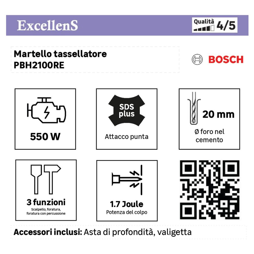 Martello tassellatore BOSCH PBH2100RE SDS Plus 2300 giri/min 550 W