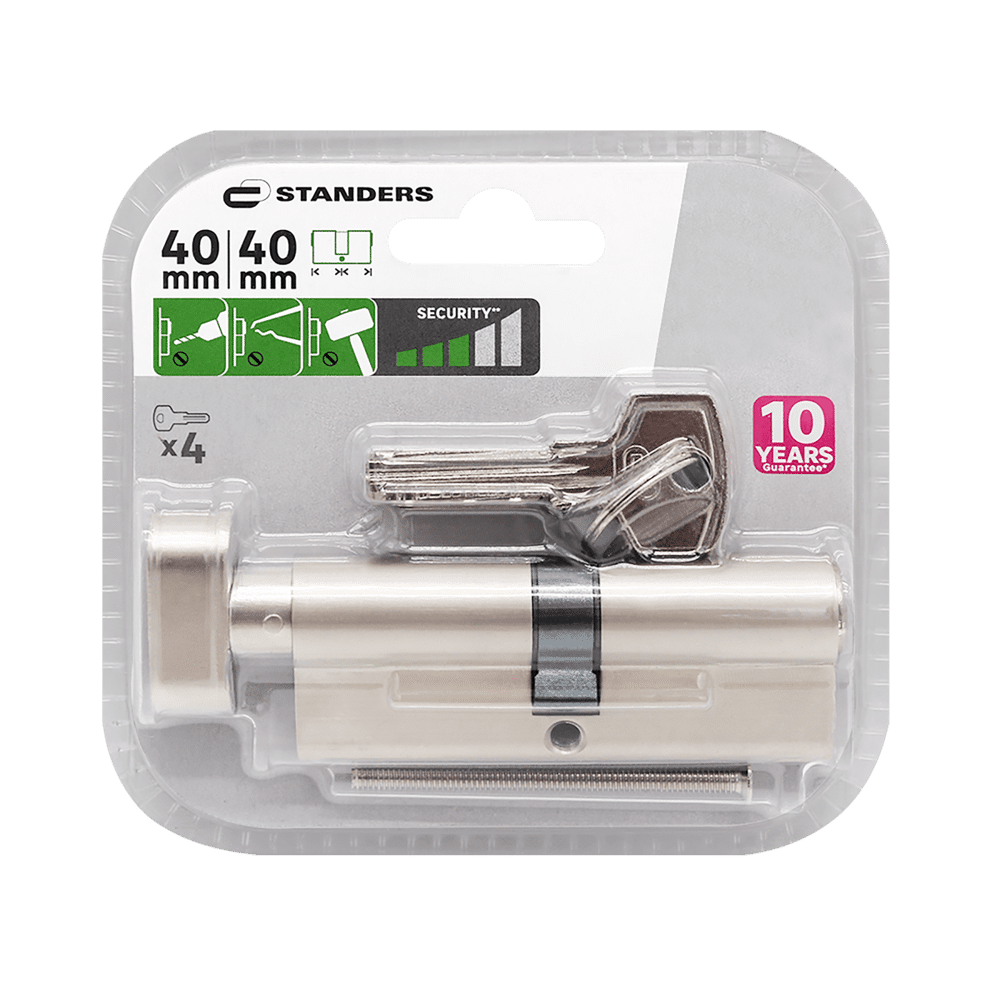 Cilindro tondo STANDERS 80 mm, 1 ingresso chiave e 1 pomolo in ottone
