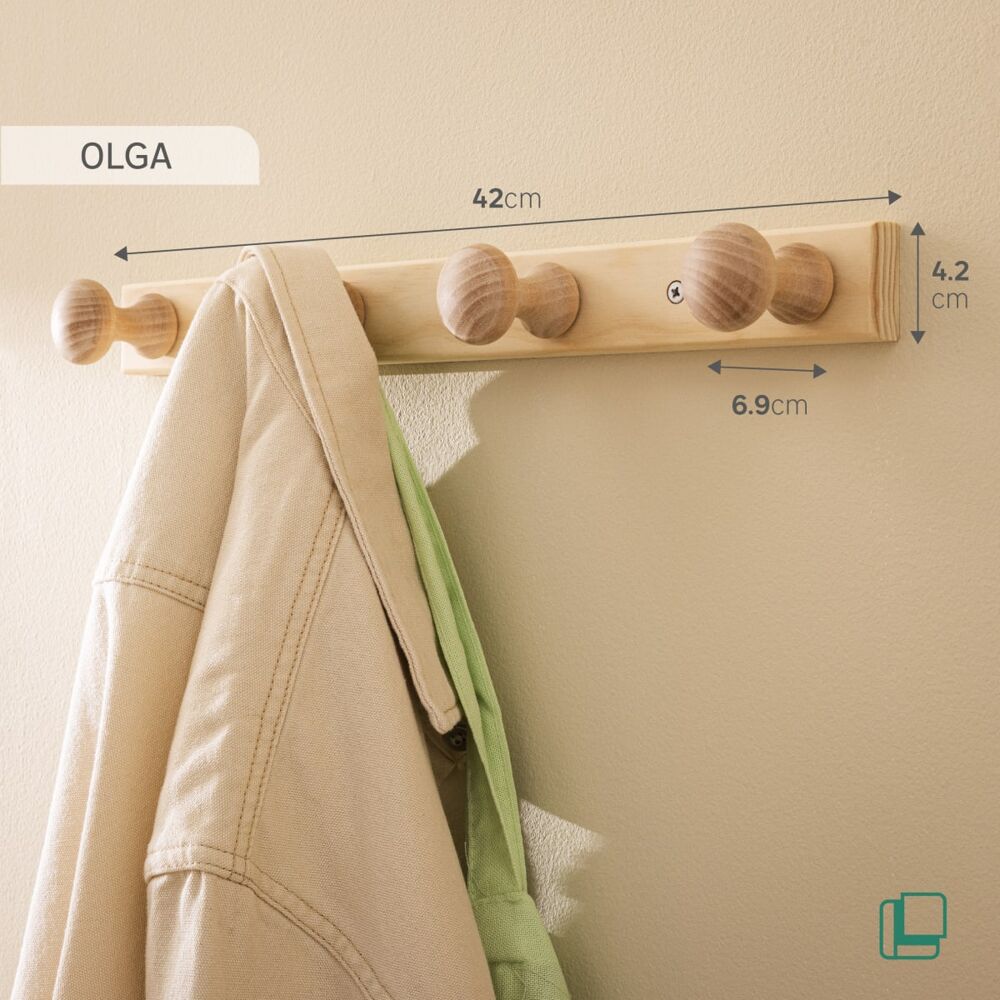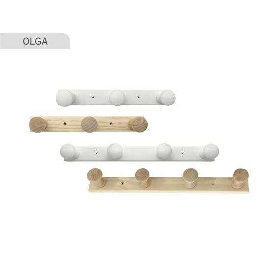 Gancio appendiabiti da avvitare OLGA in legno naturale opaco 4 ganci L 42 x H 4.2 cm