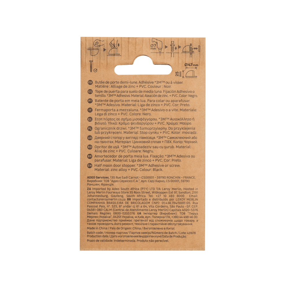 Fermaporta INSPIRE DS39 in Zinco nero Opaco Ø 4.7 x H 2.5 cm, 2 pezzi
