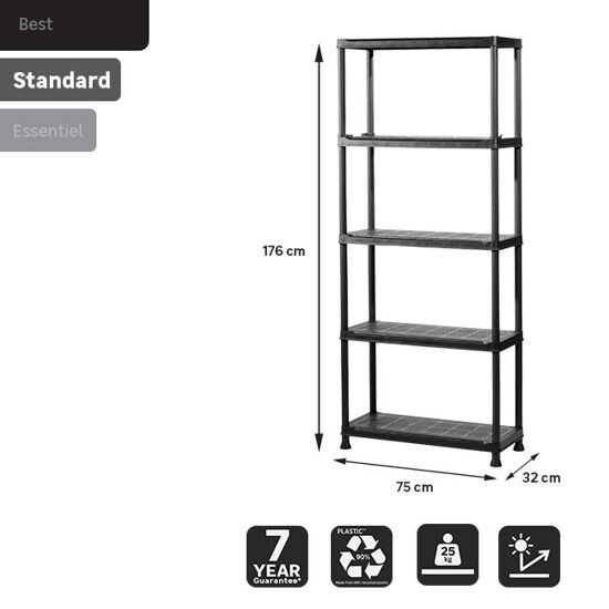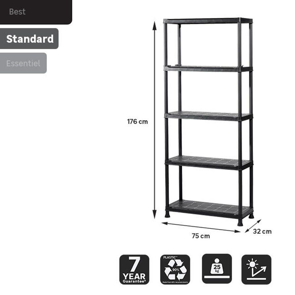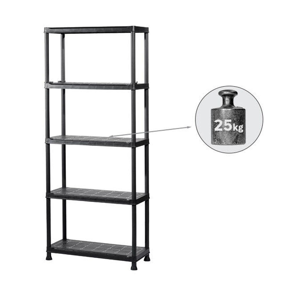 SCAFFALE IN RESINA 5 RIPIANI L75XP32X176H NERO PORTATA 30KG PER RIPIANO
