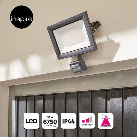 Faro da esterno con sensore di movimento Yonkers in alluminio, antracite, Modulo LED 50W INSPIRE