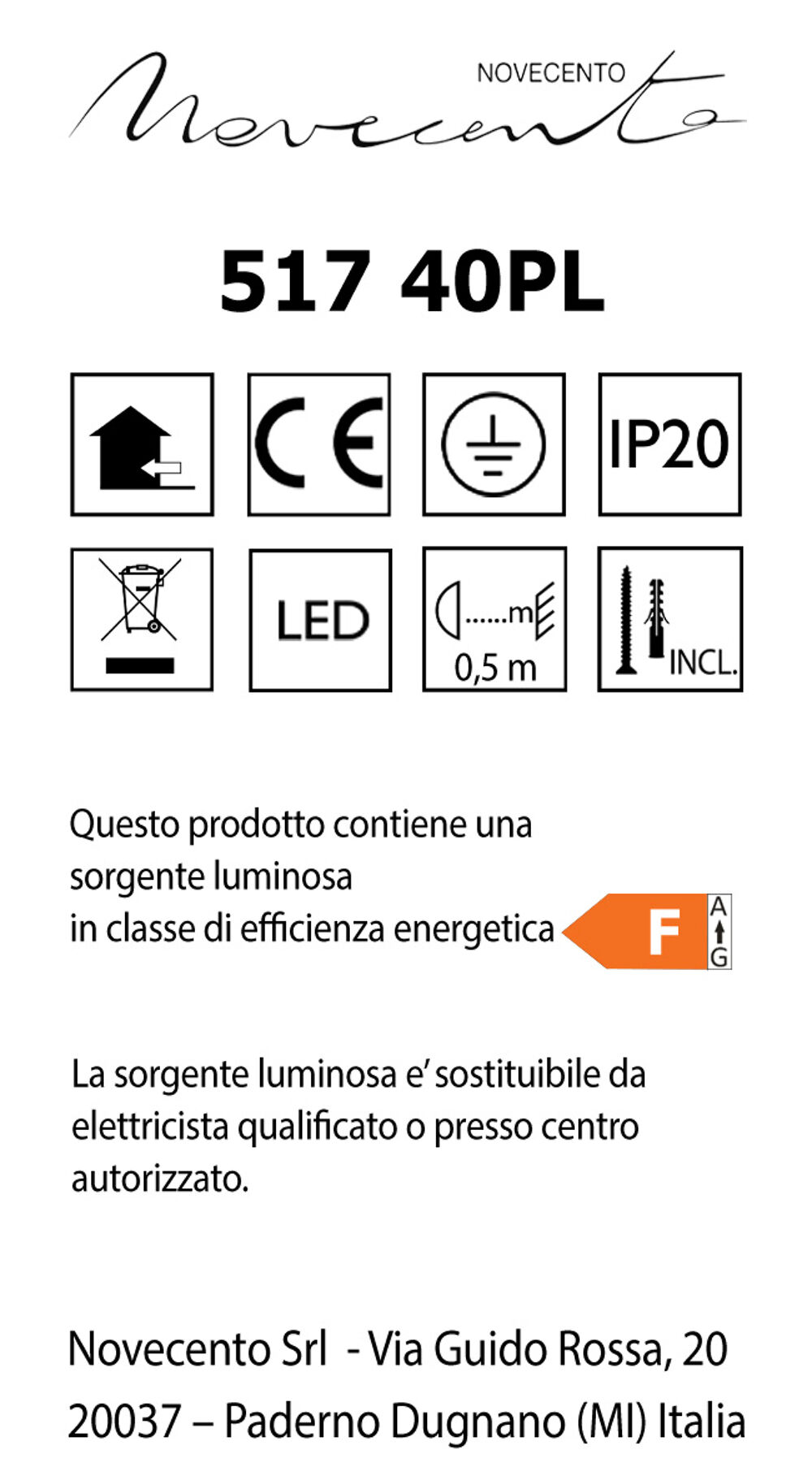 | Classe energetica (A a G) | F |