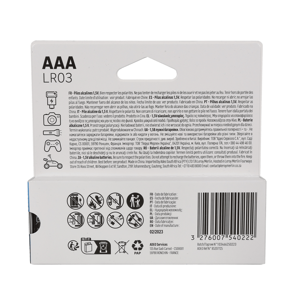 Pila alcalina LR03 AAA LEXMAN 12 batterie