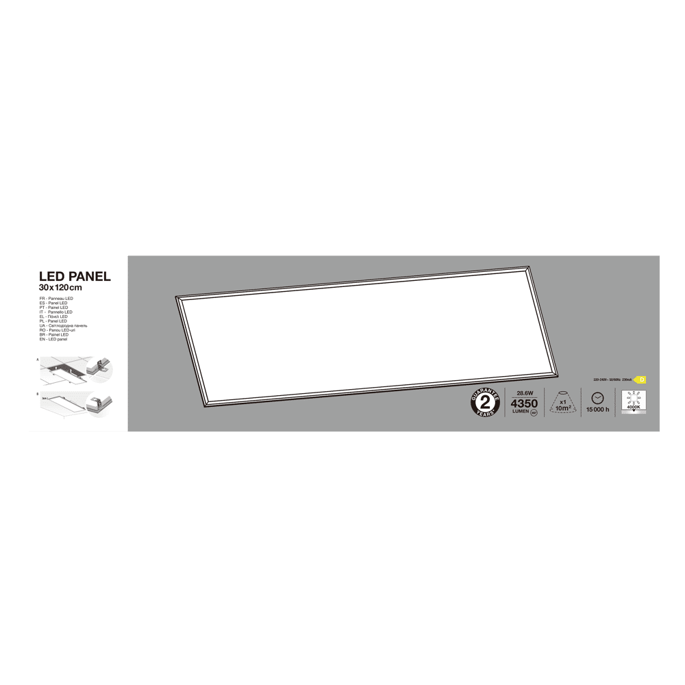Pannello LED metallo bianco 30x120 cm 40w luce naturale
