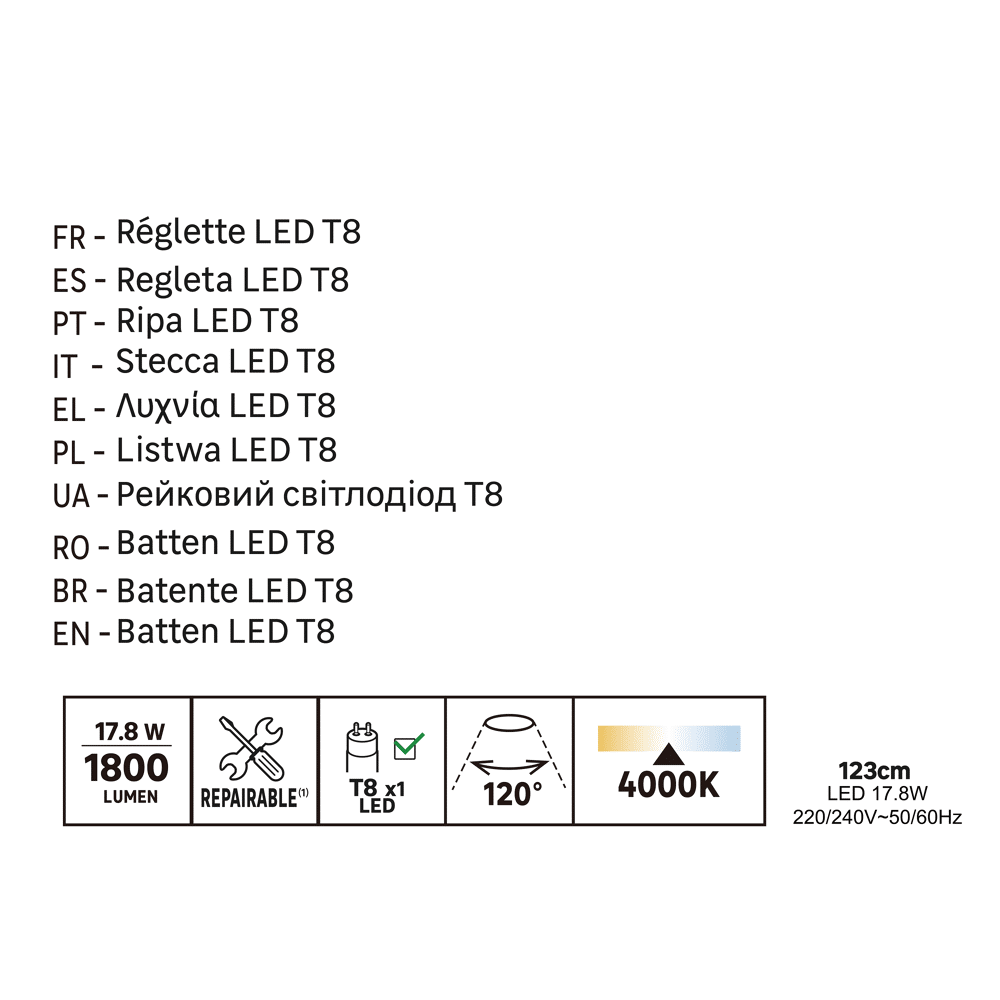| Potenza resa per lampadina inclusa (in W) | 18 |