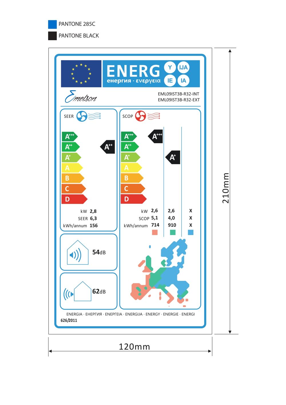 | Livello sonoro dell'unità esterna (in dB) | 62 |