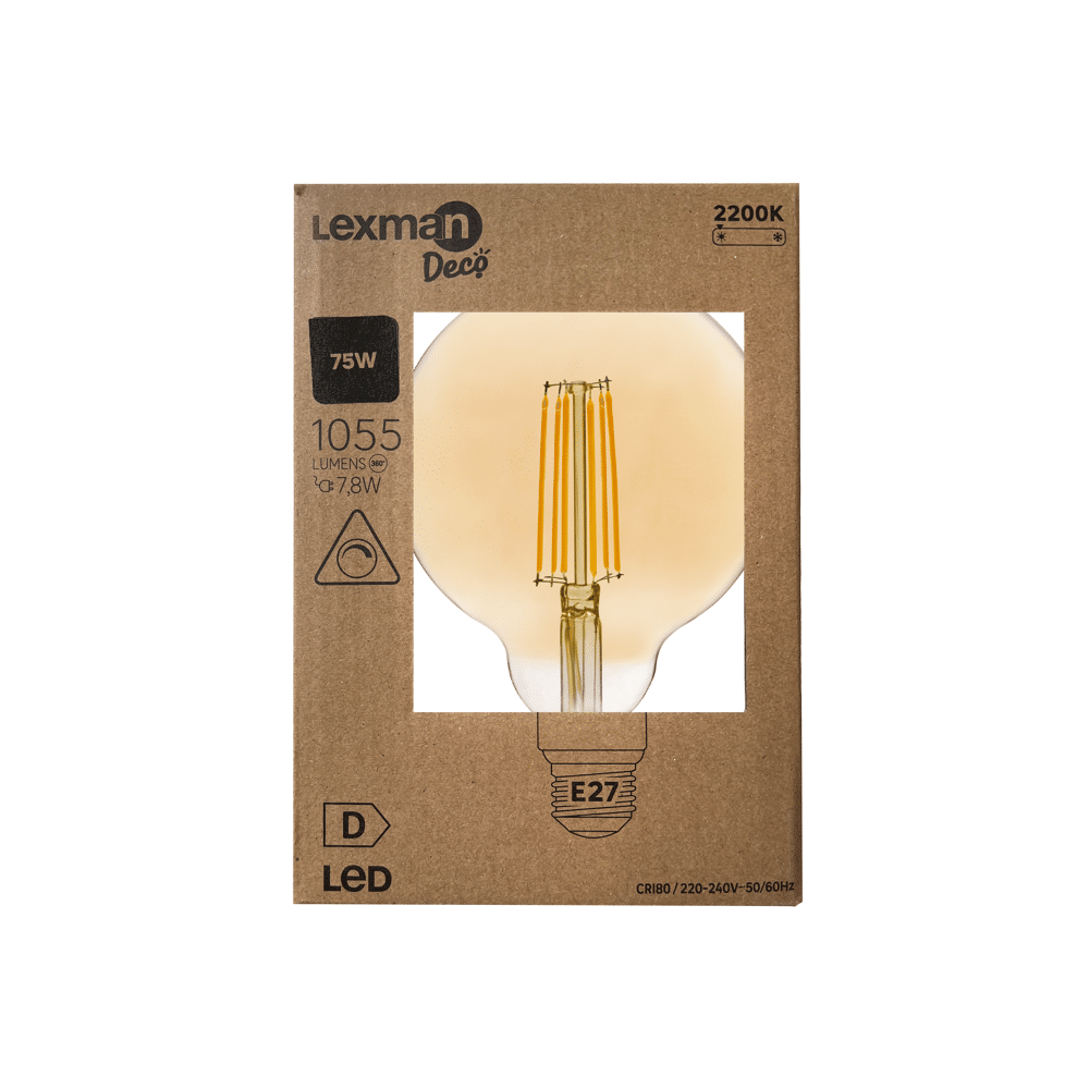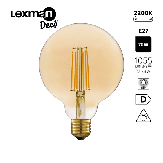 Lampadina Led vetro ambrato, globo grande ambrata