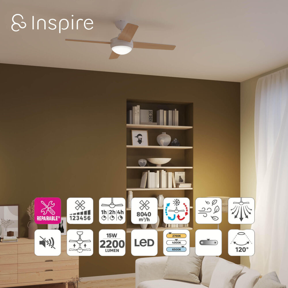 Ventilatore da soffitto Aveiro 4 pale effetto legno chiaro