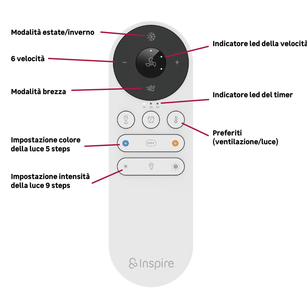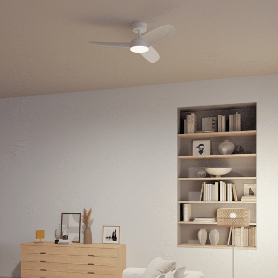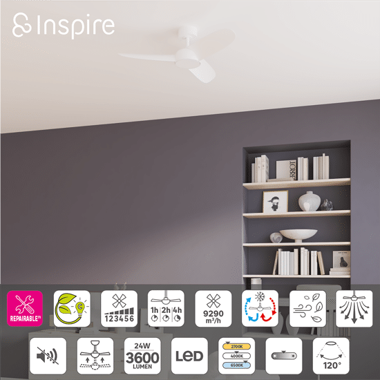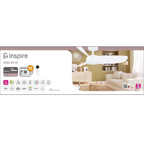 Ventilatore da soffitto Huelva bianco, Ø 107 cm, CCT, dimmerabile, INSPIRE IP20