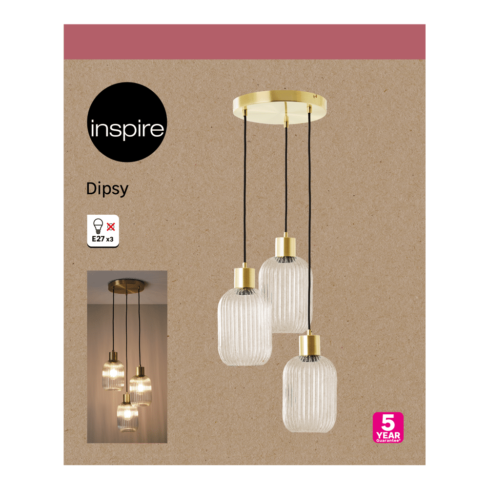 Lampadario Dipsy vetro e metallo oro 3xE27
