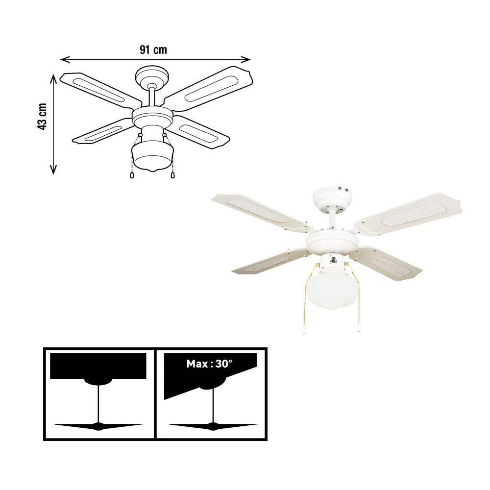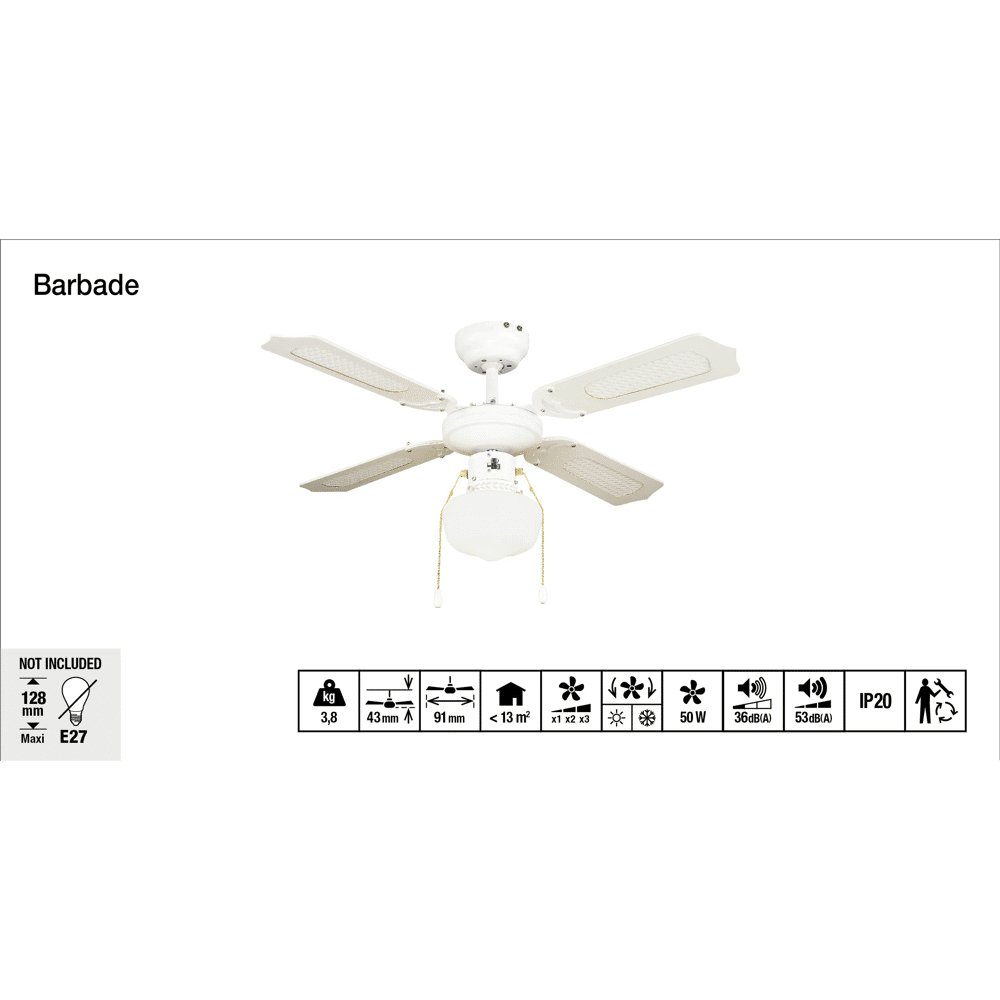 Ventilatore da soffitto Barbade 4 pale bianco