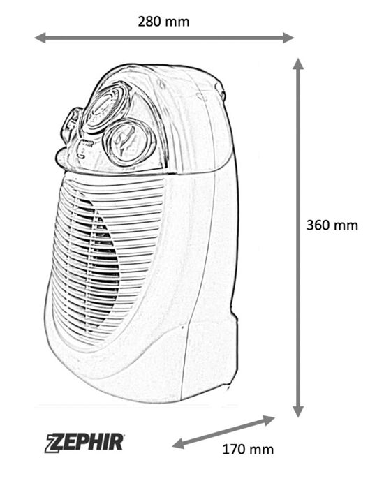 - Due potenze selezionabili 1000-2000 watt + funzione solo ventilazione