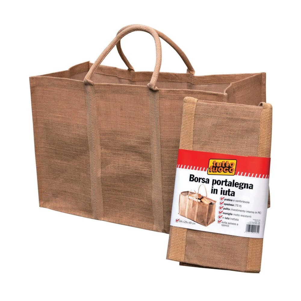 Borsa portalegna in tela di juta L 64 x H 40 x P 29 cm beige