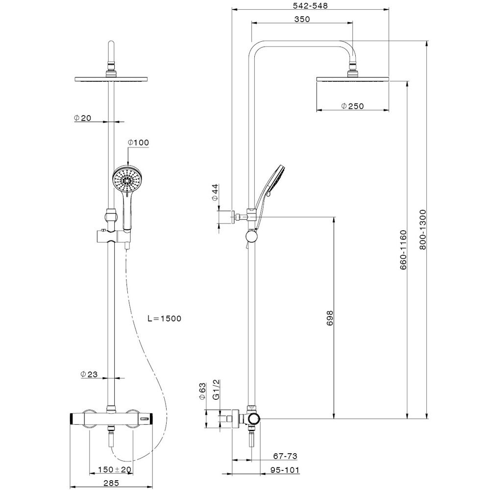 | Altezza della colonna (in mm) | Regolabile |