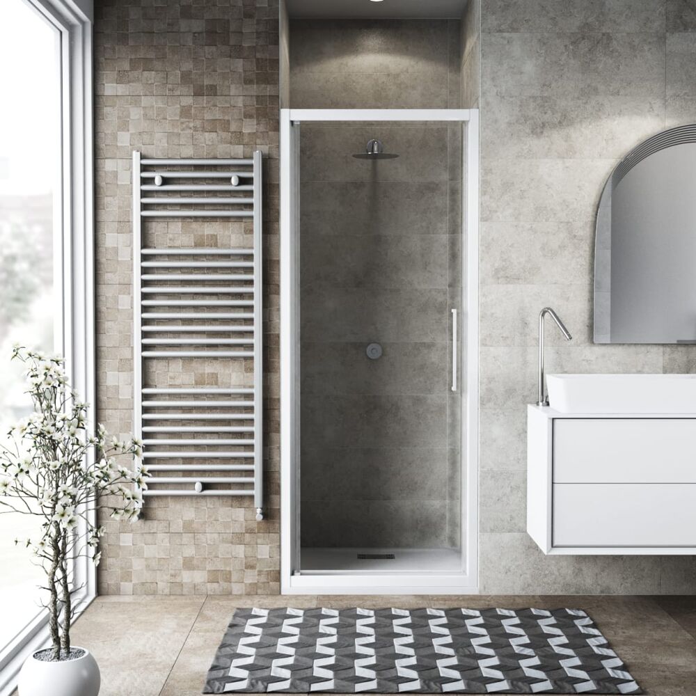 Porta doccia battente Record 80 cm, H 195 cm in vetro temprato, spessore 6 mm trasparente bianco