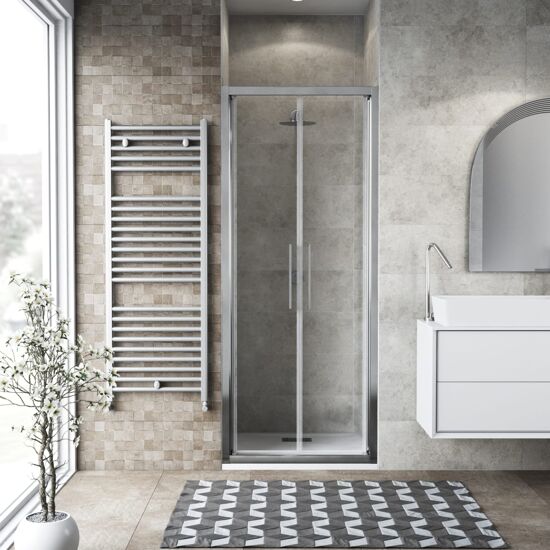 Porta doccia battente Record 80 cm, H 195 cm in vetro temprato, spessore 6 mm trasparente satinato