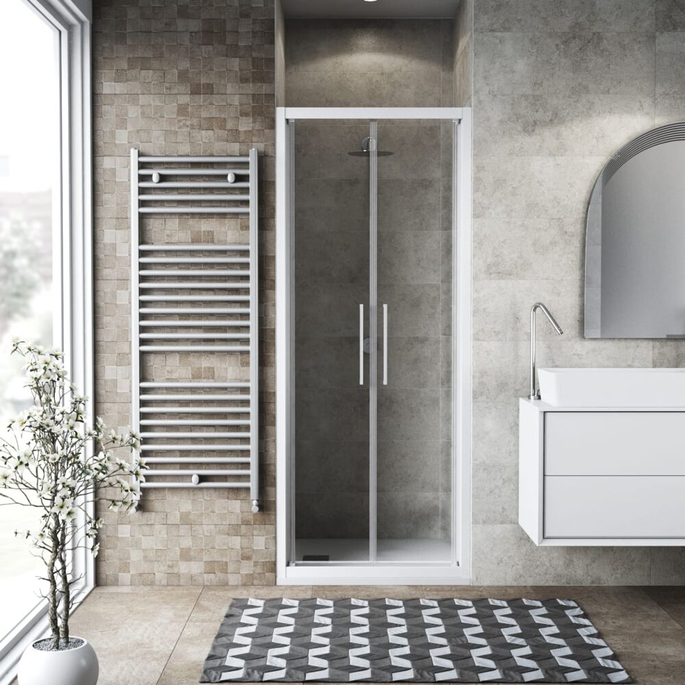 Porta doccia battente Record 95 cm, H 195 cm in vetro temprato, spessore 6 mm trasparente bianco