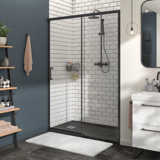 Porta doccia scorrevole Remix 140 cm, H 195 cm in vetro, spessore 8 mm trasparente nero