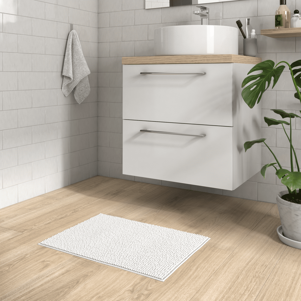 Tappeto bagno rettangolare Easy in ciniglia bianco 60 x 40 cm