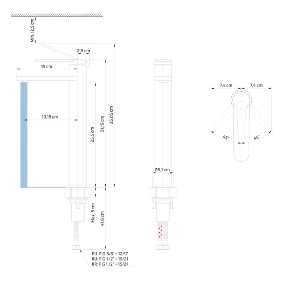 | Profondità bocca di erogazione lavabo (in cm) | 13,5 |