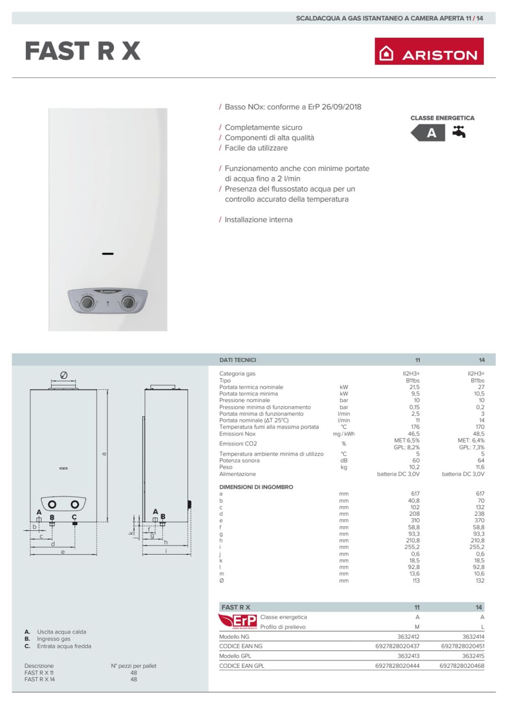 Scaldabagno a gas metano ARISTON Fast R X 11 l/min