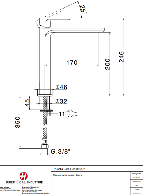 MISCELATORE LAVABO ALTO PLANO CROMO HUBER