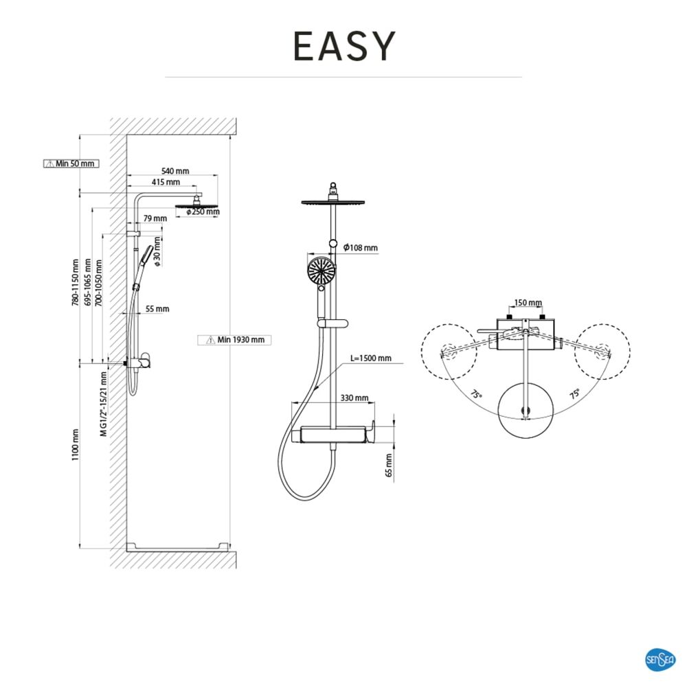 - regolare il flusso doccia sia dal soffione che dalla doccetta, integrando il miscelatore ottenendo >spazio di movimento