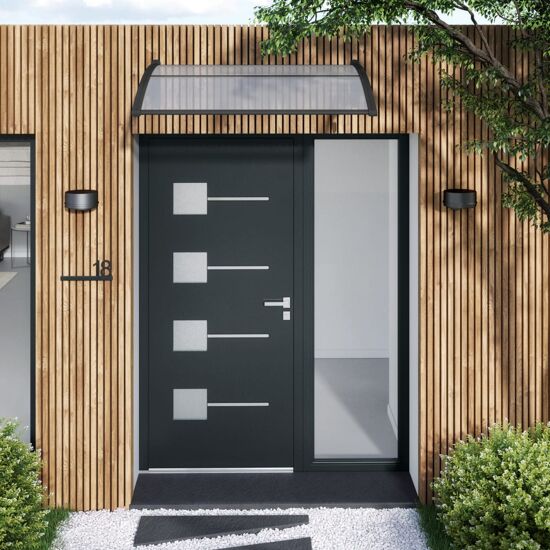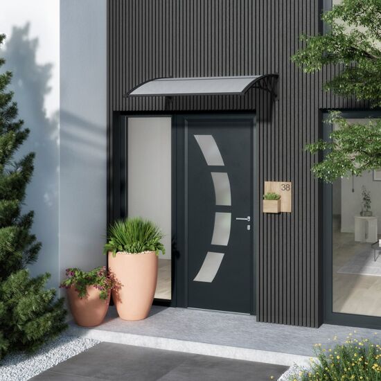 Pensilina in resina trasparente e struttura in resina 100 x 120 cm