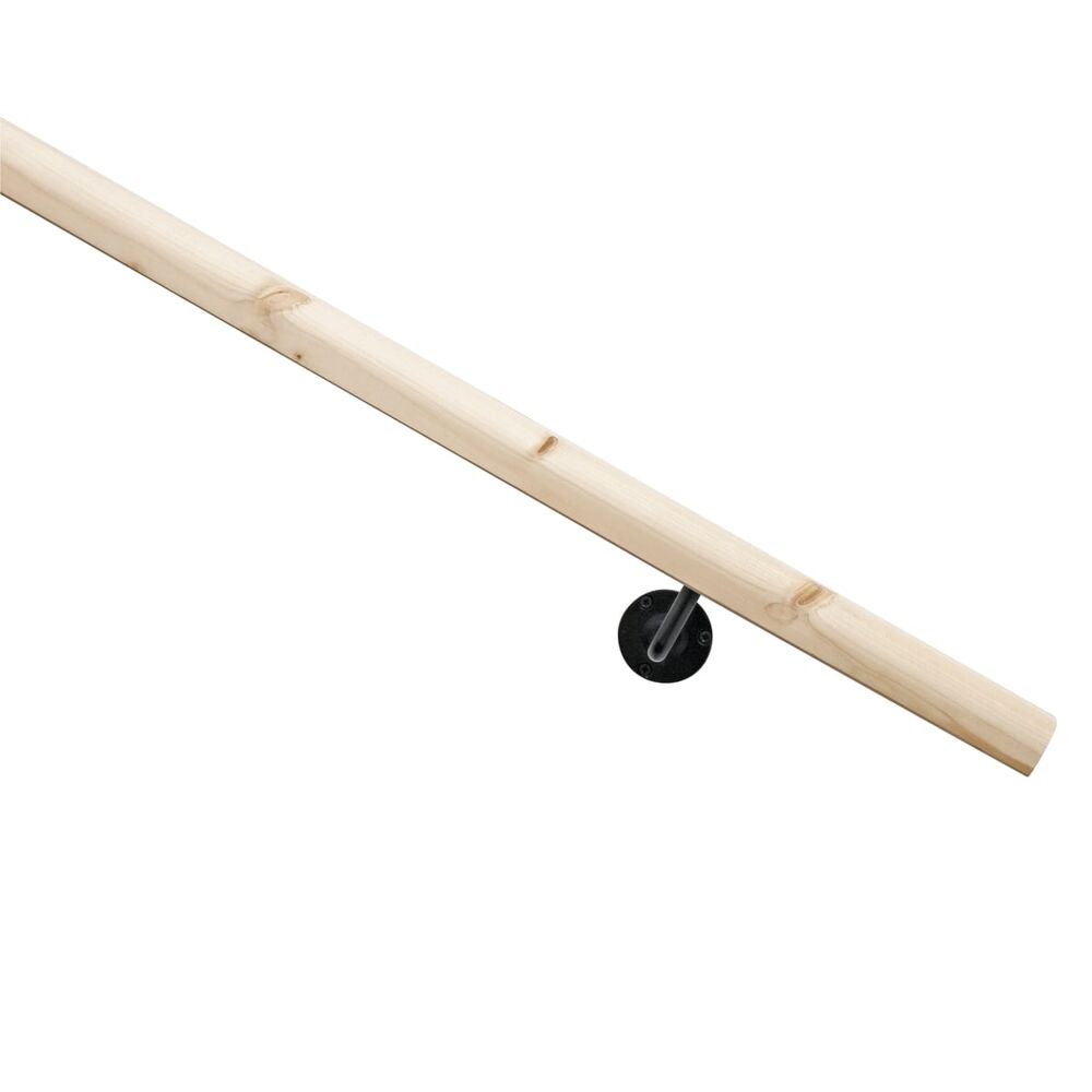 Kit corrimano in legno di abete naturale con supporto nero 70 x 2000 mm spessore 36 mm