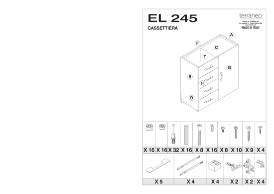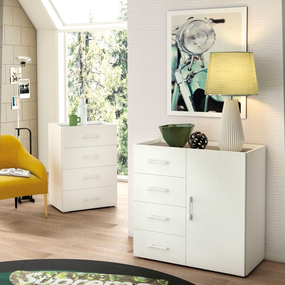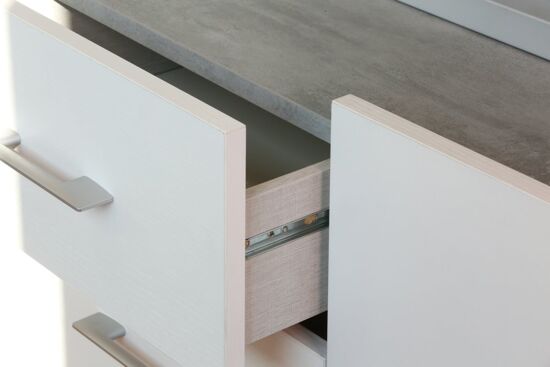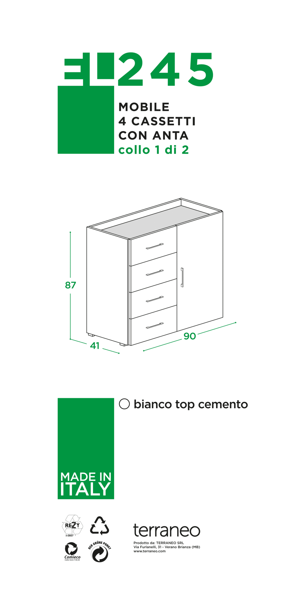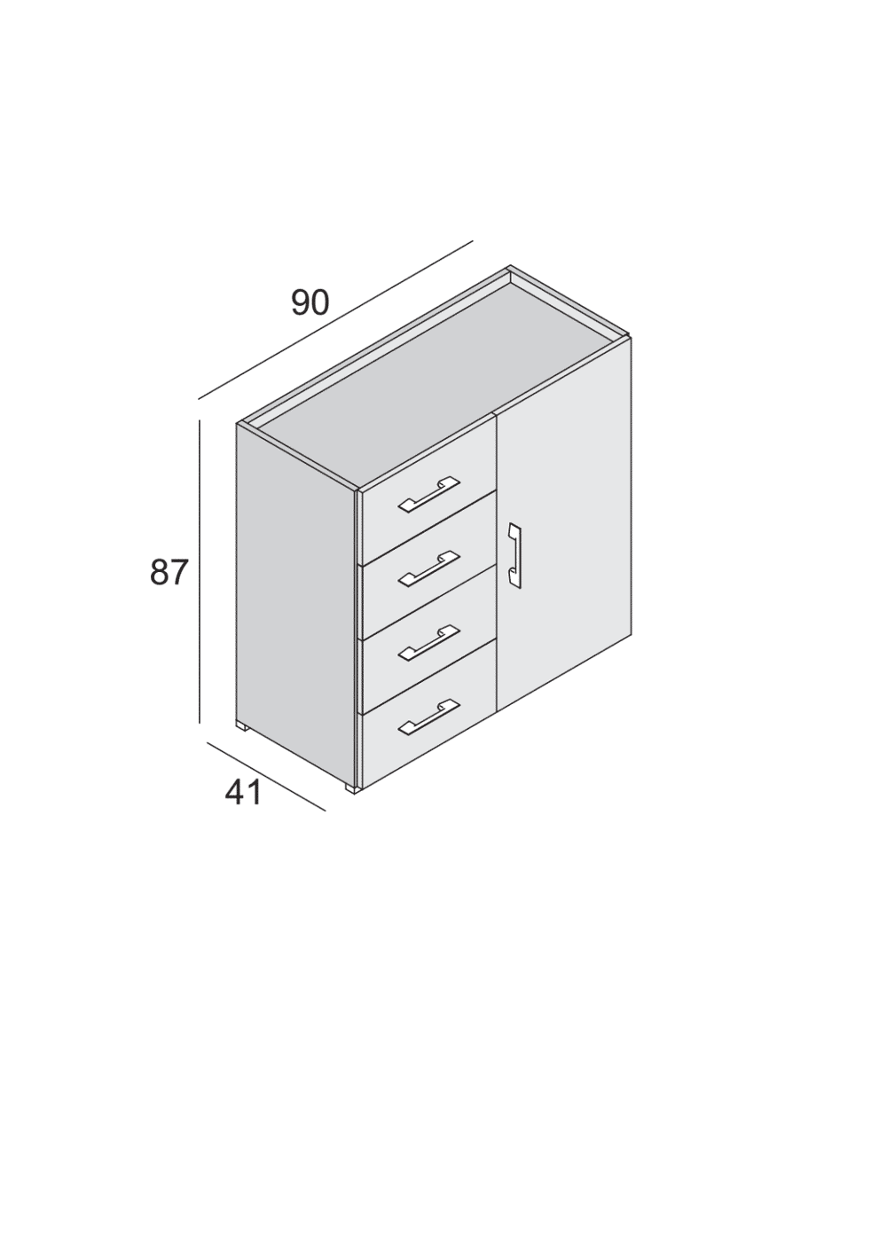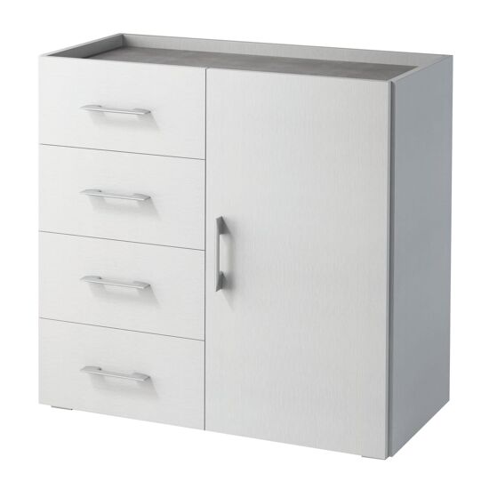 Base 1 anta 4 cassetti bianco 90 x 41 x 87 cm con ripiano superiore cemento