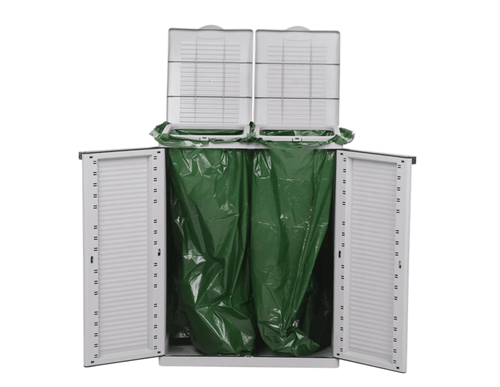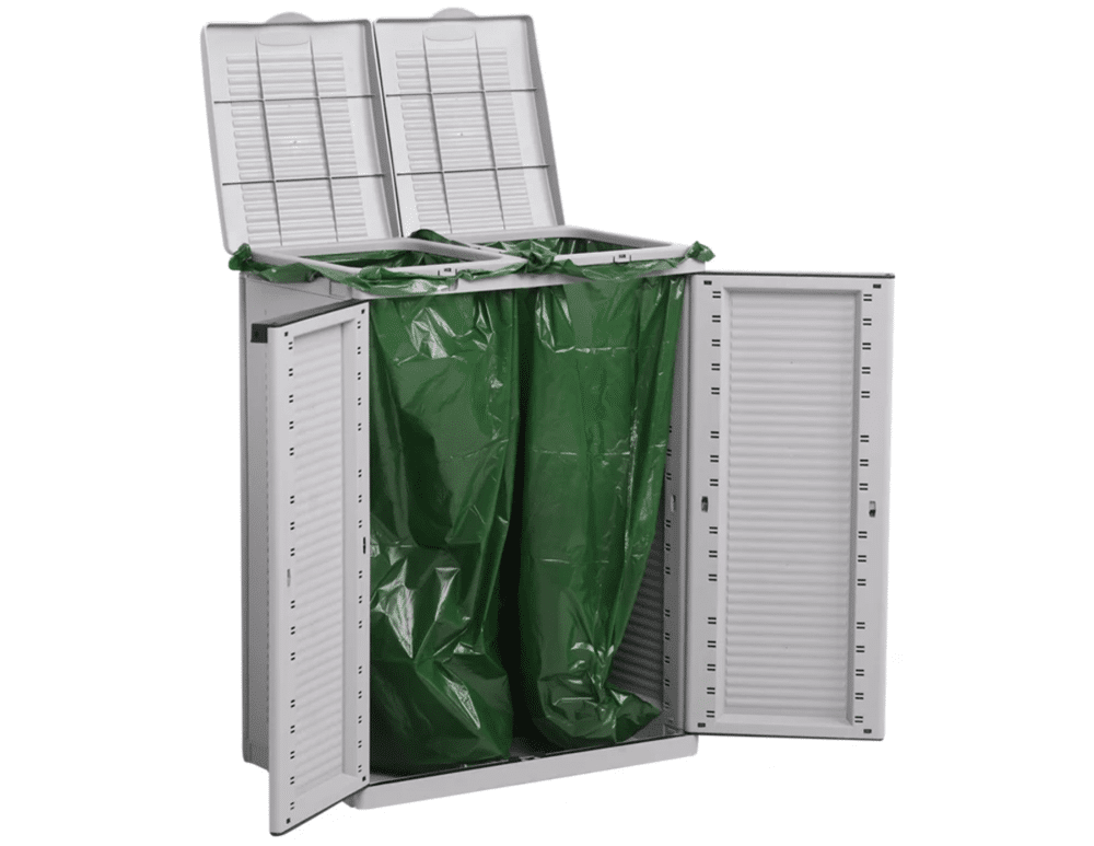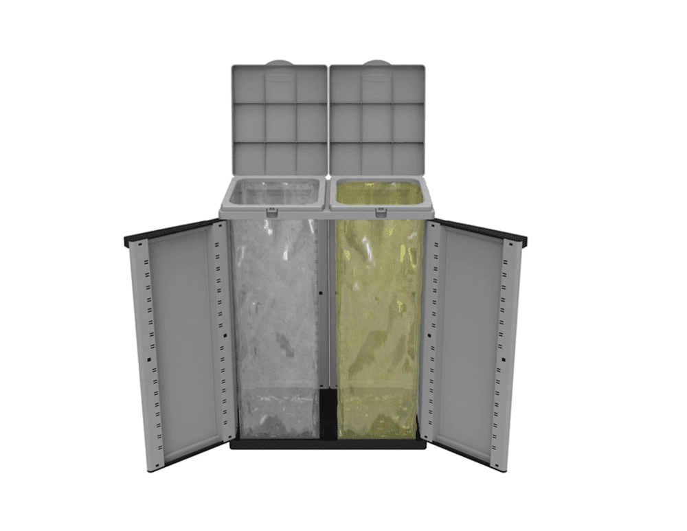 - Ogni anta presenta al suo interno un fermasacco, ideale per fissare sacchetti dei rifiuti da 100 lt.