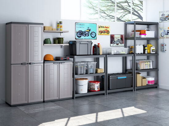 - La gamma di armadi Jolly è ideale per ambienti come il garage o la lavanderia. Gli armadi sono dotati di ripiani regolabili, per un'ottimizzazione dello spazio interno, e di piedini regolabili in altezza, per meglio adattarsi alle pavimentazioni irregolari.
