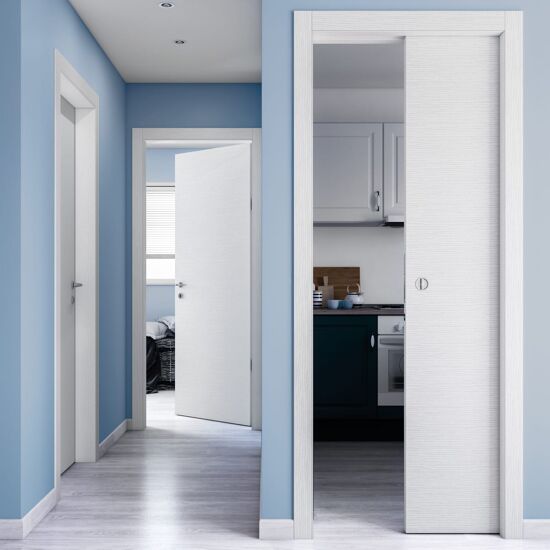 Porta scorrevole a scomparsa Oxford Kent frassinato bianco L 90 x H 210 cm