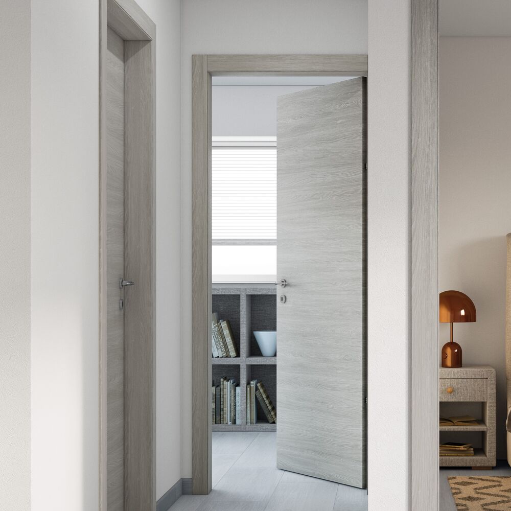 Porta a battente Cambridge reversibile rovere grigio L 60 x H 210 cm