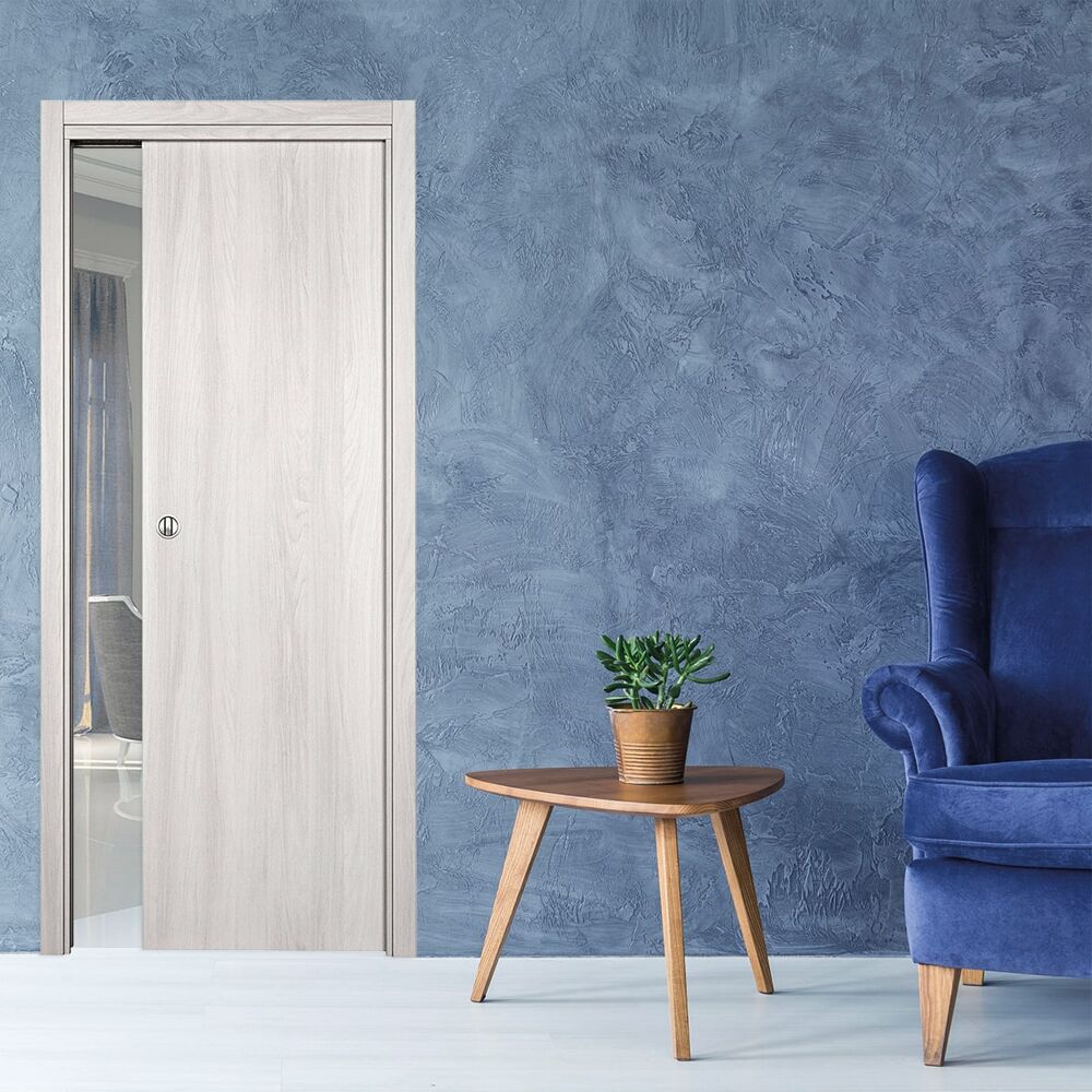 Porta scorrevole a scomparsa in legno con apertura reversibile