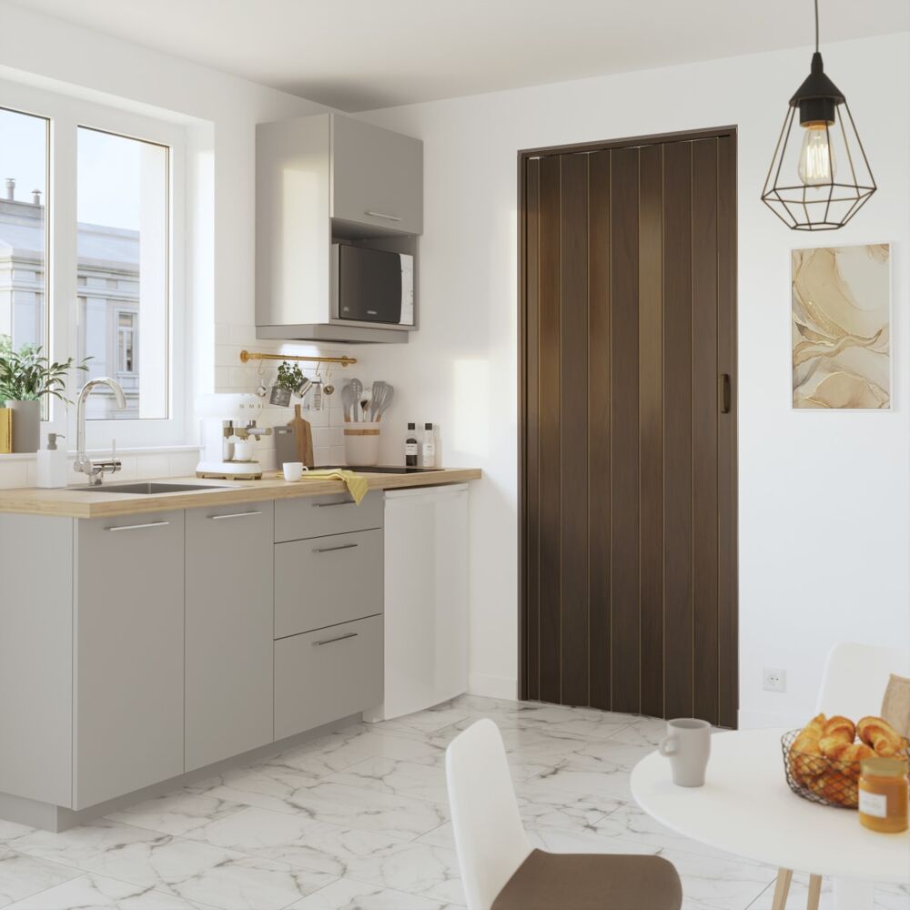 Porta a soffietto Pia in pvc marrone L 85 x H 214 cm