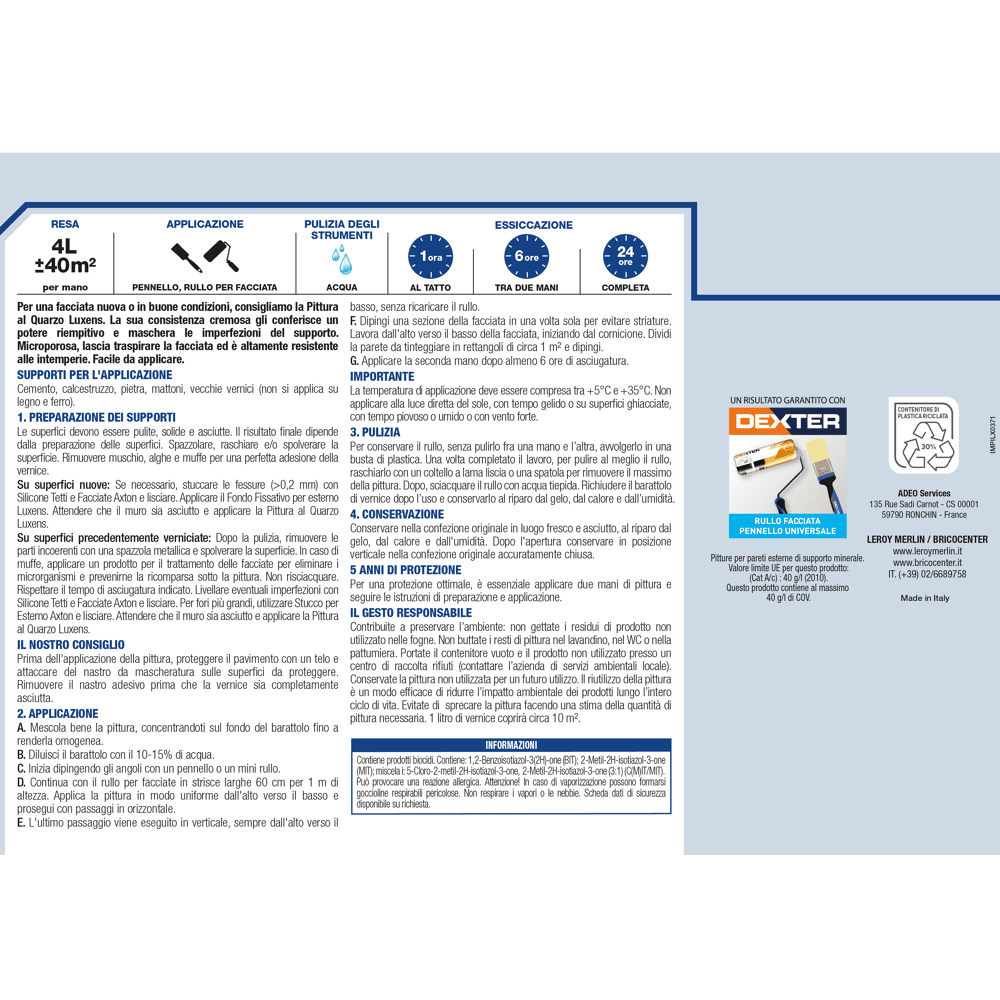 Idropittura al quarzo LUXENS per facciate bianco 4 L