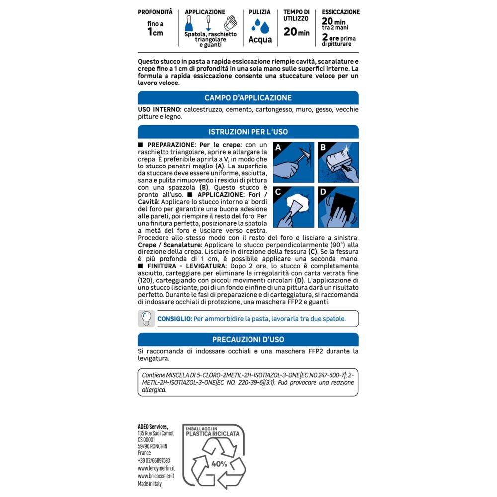 STUCCO RIEMPITIVO A RAPIDA ESSICAZIONE IN PASTA PER INTERNO AXTON 330 GR