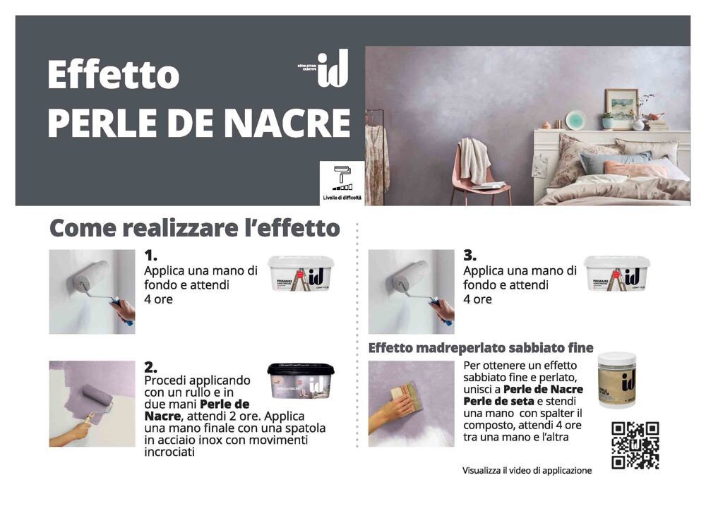 | Resa (in m²/l o m²/kg) | Circa 12 mq (resa riferita alla pittura Perle de Nacrè) |