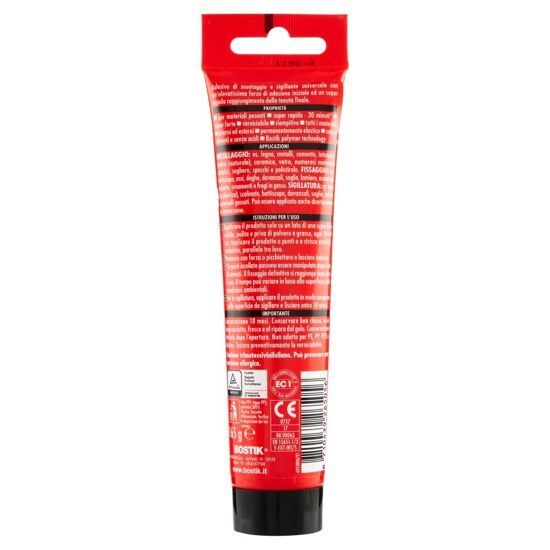 | Materiali da incollare | Vetro, pietra, pietra naturale, calcestruzzo, stucco, materie plastiche, legno, compensato, ferro, alluminio, zinco, acciaio, acciaio inossidabile e altri metalli, piastrelle di ceramica, sughero e specchi. |