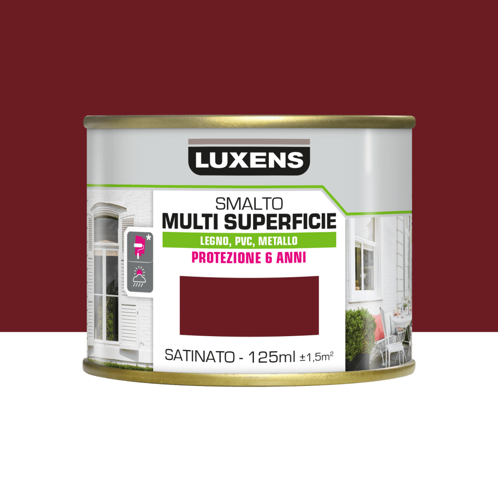 SMALTO ACQUA DA ESTERNO E INTERNO ROSSO PORPORA SATINATO MULTI SUPERFICIE LUXENS 125ML